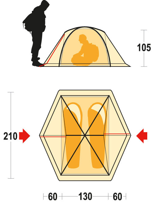 Range of two- and three-person tents offering excellent living space, with ventilation guaranteed by double entrance, front and back, with vestibule.