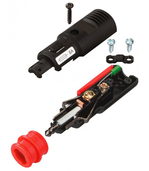 The Pro Car 12V Universal Plug with 16A Fuse has its wires attached to the plug by screw connectors.
