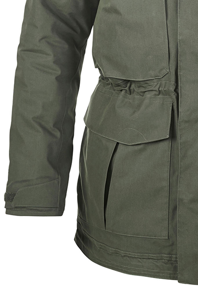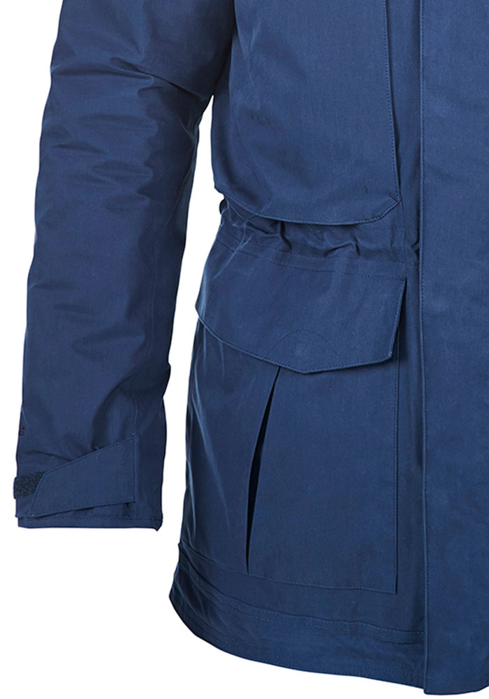 - Main body: AQ2 (199g/sq m); content: 70% cotton, 30% polyamide with polyurethane membrane; cotton polyamide blended peach fabric; waterproof rating: 10,000m; breathability rating: 10,000g/sq m/24hrs; durable water-repellent finish