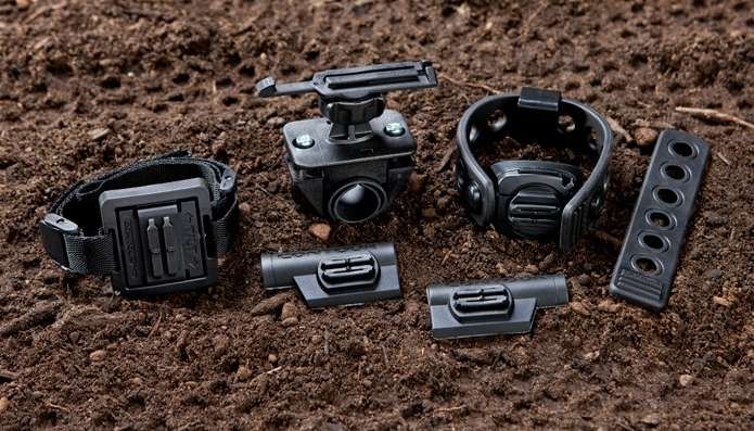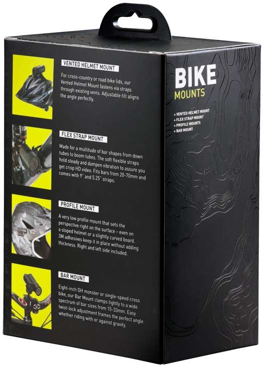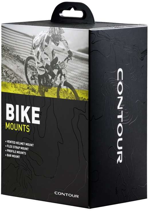 The Contour Camera Bike Mounts Kit includes helmet mounts for use with a vented or a full-face helmet, a bar mount for use on the handlebars or the downtube and a flex strap that could be used to position the Contour camera on a seat post, on a chain stay or on any bike tubing.