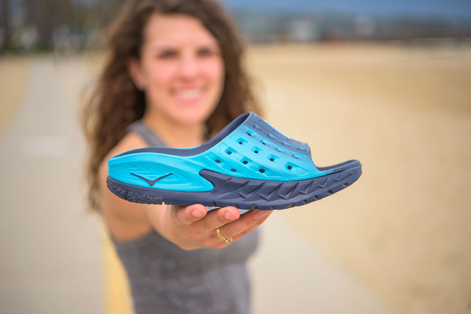 You've just finished a long run or grueling race, and simply put, your feet need some TLC. Enter our new ORA SLIDE. We put HOKA ONE ONE's lauded oversized midsole and meta-rocker into a sandal and love the result. No flip, no flop, just comfort and support. Your tired feet just got rescued.