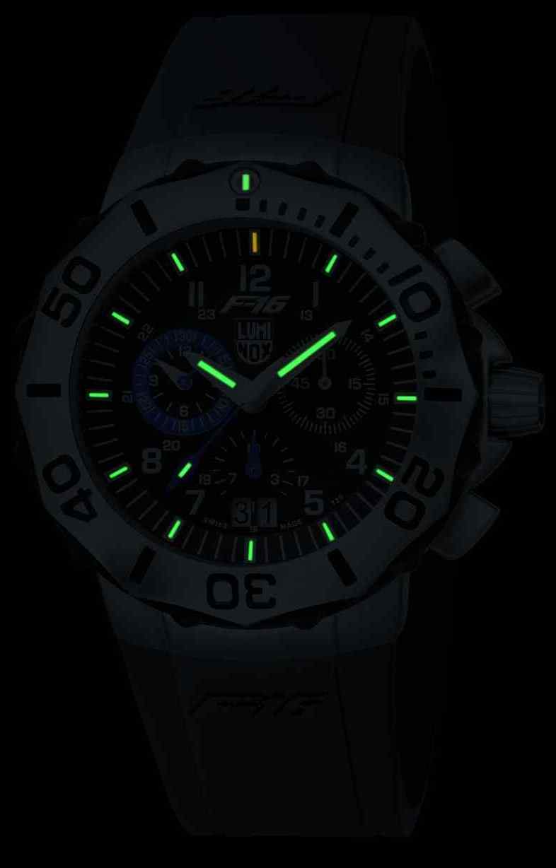 The Luminox F-16 Fighting Falcon Chronograph Watch features the the ultimate illumination system.