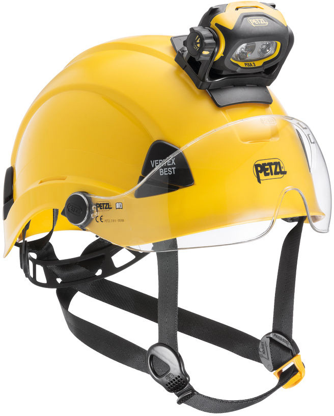 - Compatible with Petzl helmets with or without eye shield. For other helmets, verify the compatibility of your glue with the helmet manufacturer.