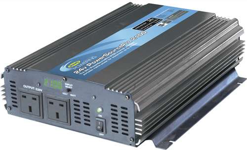 The PowerSourcePro Inverter 2100W includes wireless remote control and can run for 12 hours at 2100 watts before requiring a period of cooling.