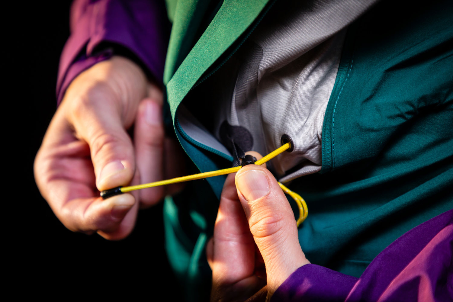 - Adjustable split hem drawcords