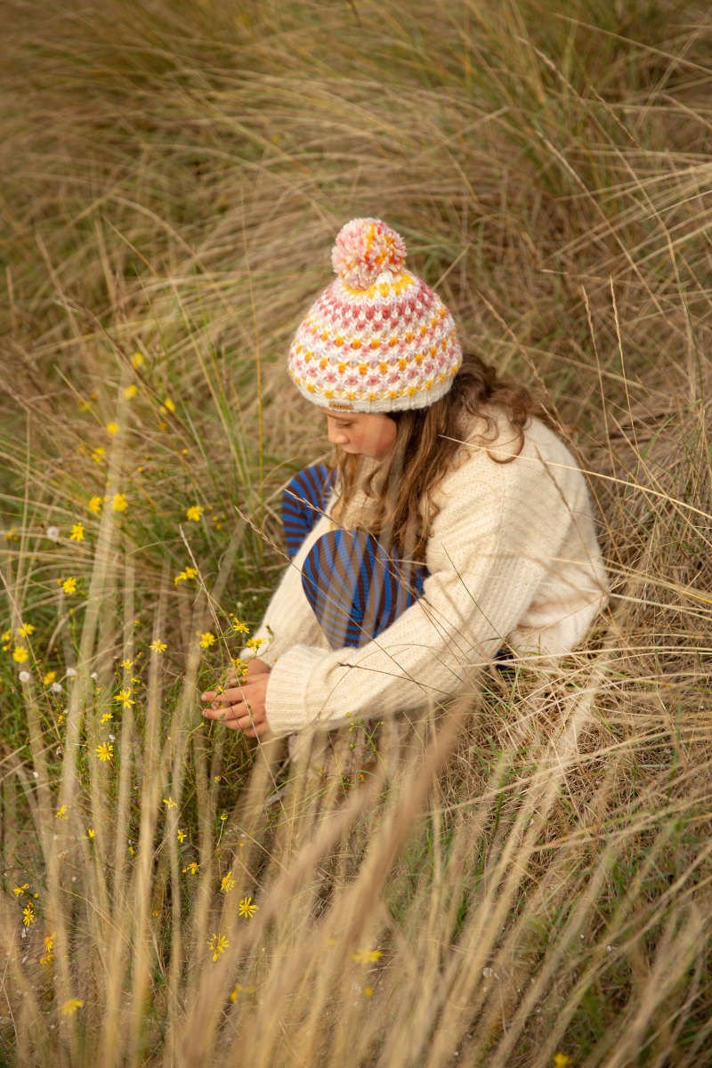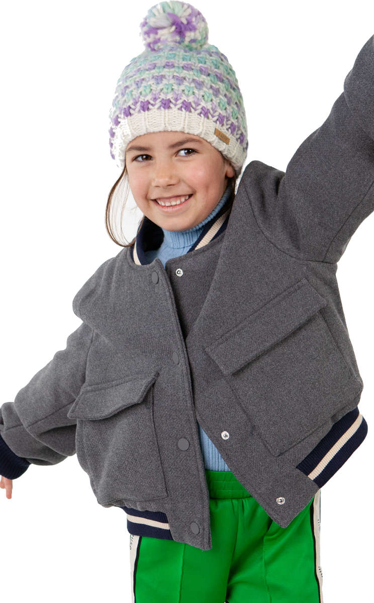 The Nicole Beanie Girls has a pom and a unique mottled knit. Due to the space dyed yarn, each hat is unique and the item may differ in colour order from the product photo. This beanie is lined with a fleece headband for extra comfort. Perfect to combine with the Nicole Scarf.