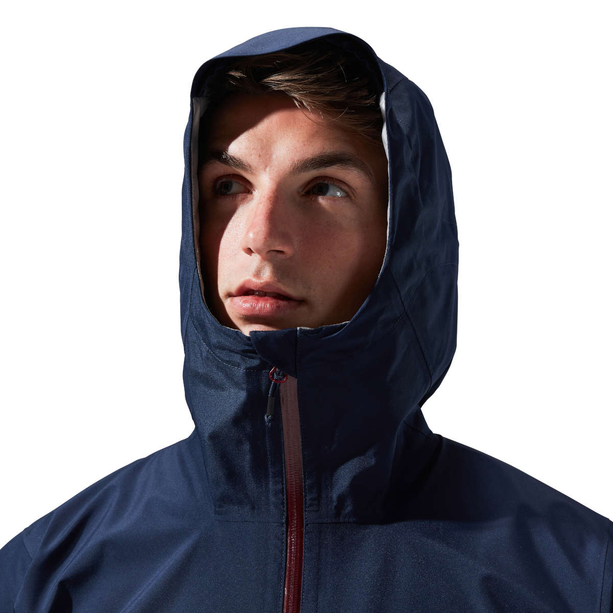 - A fully adjustable hood with stiffened peak and chin guard means you won’t get rained off.