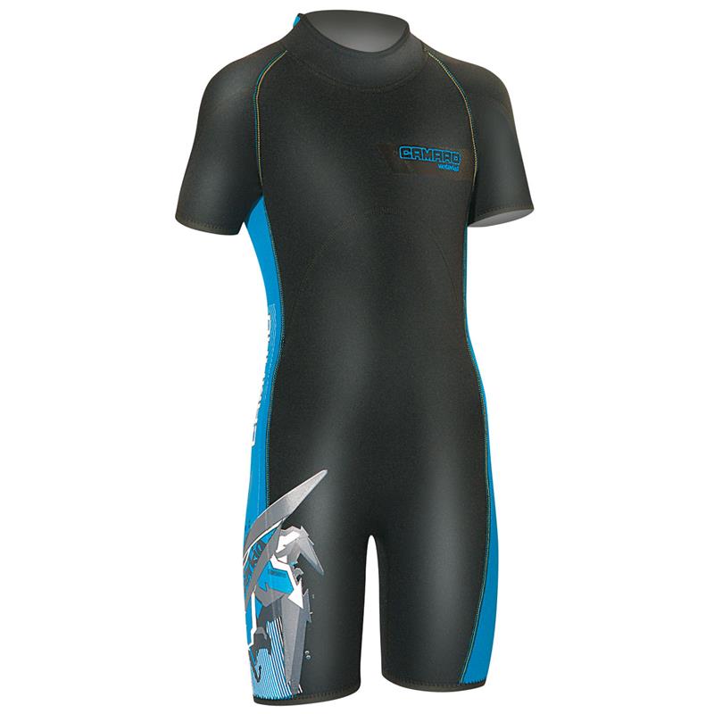 In addition, Camaro have colour and fun incorporated into their junior wetsuits with the cool blue panels and the funky blue, black and grey design.