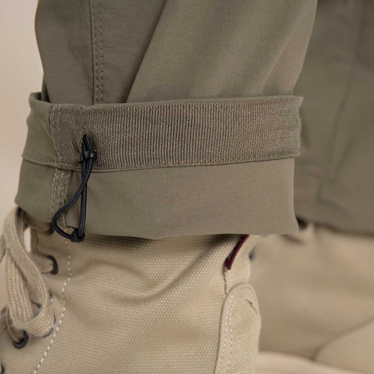 - Adjustable hem with heel tape reinforcement
