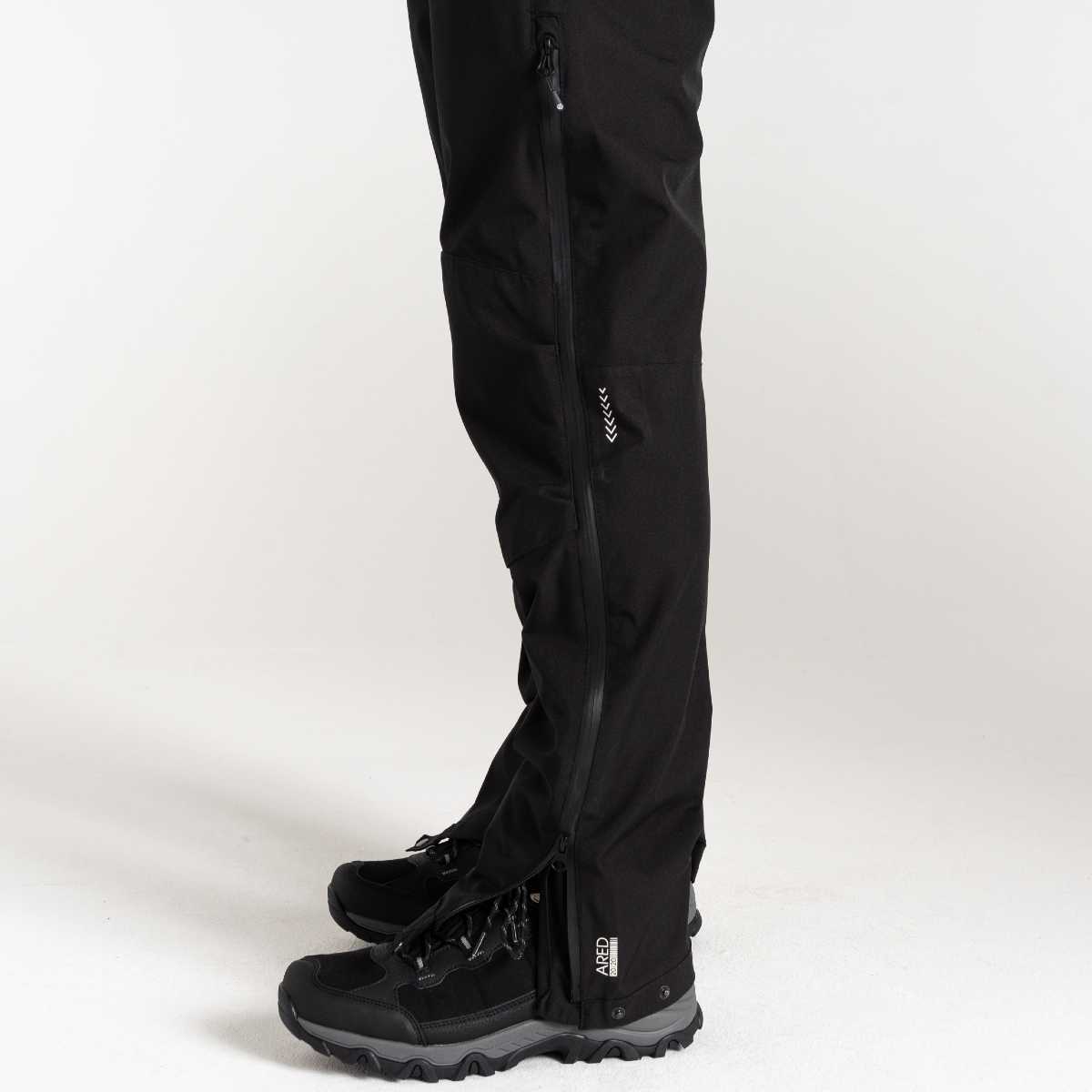 The Men's Adriot III Overtrouser. Constructed from recycled waterproof and breathable stretch fabric with our advanced ARED 30/30 technology, these men's overtrousers offer complete protection from the elements while allowing moisture vapor to escape, keeping you dry and comfortable. These men's waterproof overtrousers also come with taped seams to keep rain locked out. AEP Kinematics technology including an articulated knee design, provides our most ergonomic fit for unrestricted movement and comfort during outdoor activities. The adjustable shock cord waist system allows for a customised fit, ensuring secure comfort during your adventures. You're guaranteed easy on-off wear with the side leg access, while the adjustable snap-cuff closure adds added protection from the elements. With our Adriot III overtrousers you can conquer the mountains with confidence.