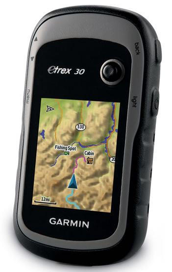 The Garmin eTrex 30 boasts an integrated 3-axis tilt-compensated electronic compass, which shows your heading even if you are standing still and even if you are not holding it horizontal.