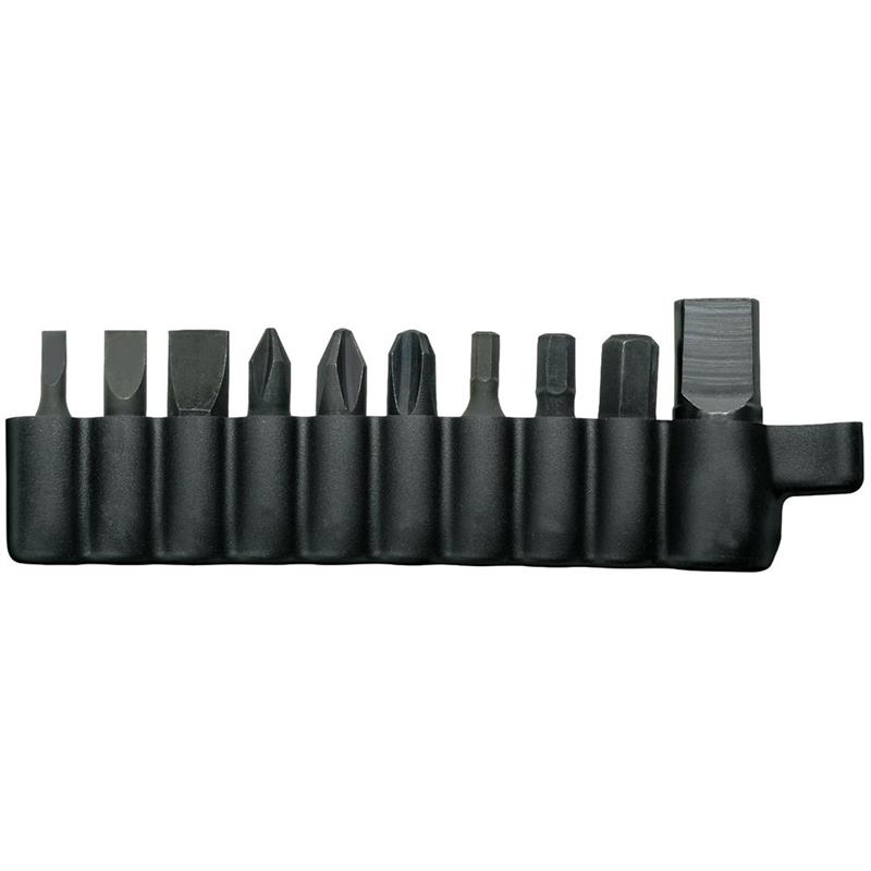 The Gerber Tool Kit includes the following tools: three different sizes of each of these: crosspoint screwdrivers, flat head screwdrivers and torx bits. In addition, a bit adaptor is included to allow them all to fit your multi-plier.