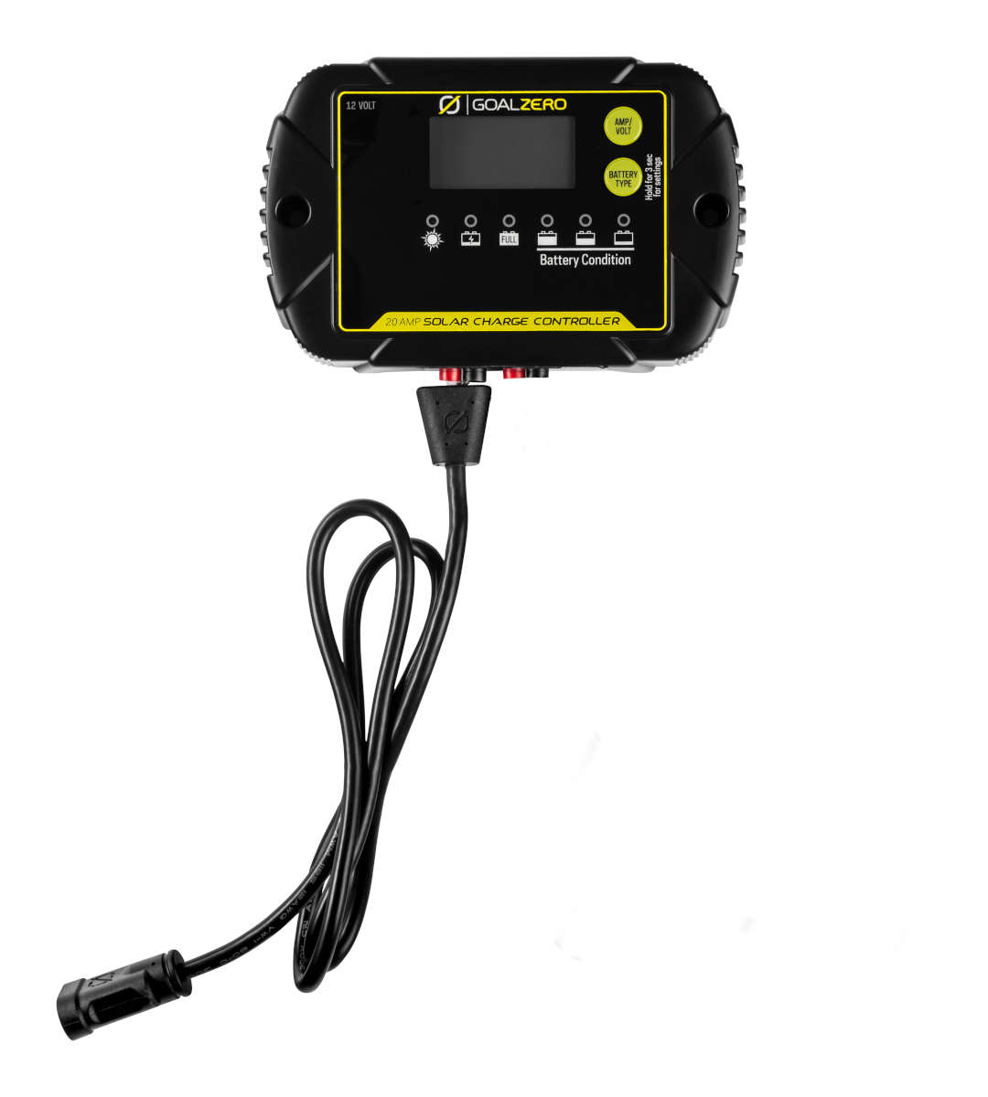 Monitor and regulate solar input for 12V batteries with the 20 Amp Charge Controller. Designed to integrate seamlessly with Goal Zero solar panels, the charge controller comes with a pre-installed High Power Port and an easy-to-read LED screen. Equipped with an IP65 rating, the charge controller is weather resistant and dustproof, allowing for protection against the elements when powering off-grid adventures or outdoor equipment.