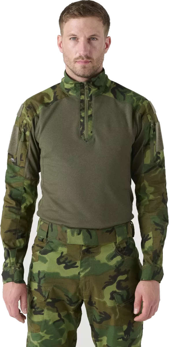 Practical YKK zippered pockets are placed on the shoulders, allowing for the safe storage of small items such as GPS devices or maps. Double hook & loop panels on the shoulders enable easy personalization of the shirt by adding emblems or patches, such as a national flag or unit insignia. A high collar with a zipper provides additional protection, and hook & loop adjustable cuffs allow for a perfect fit. Additionally, reinforcements around the elbows offer protection against abrasion.