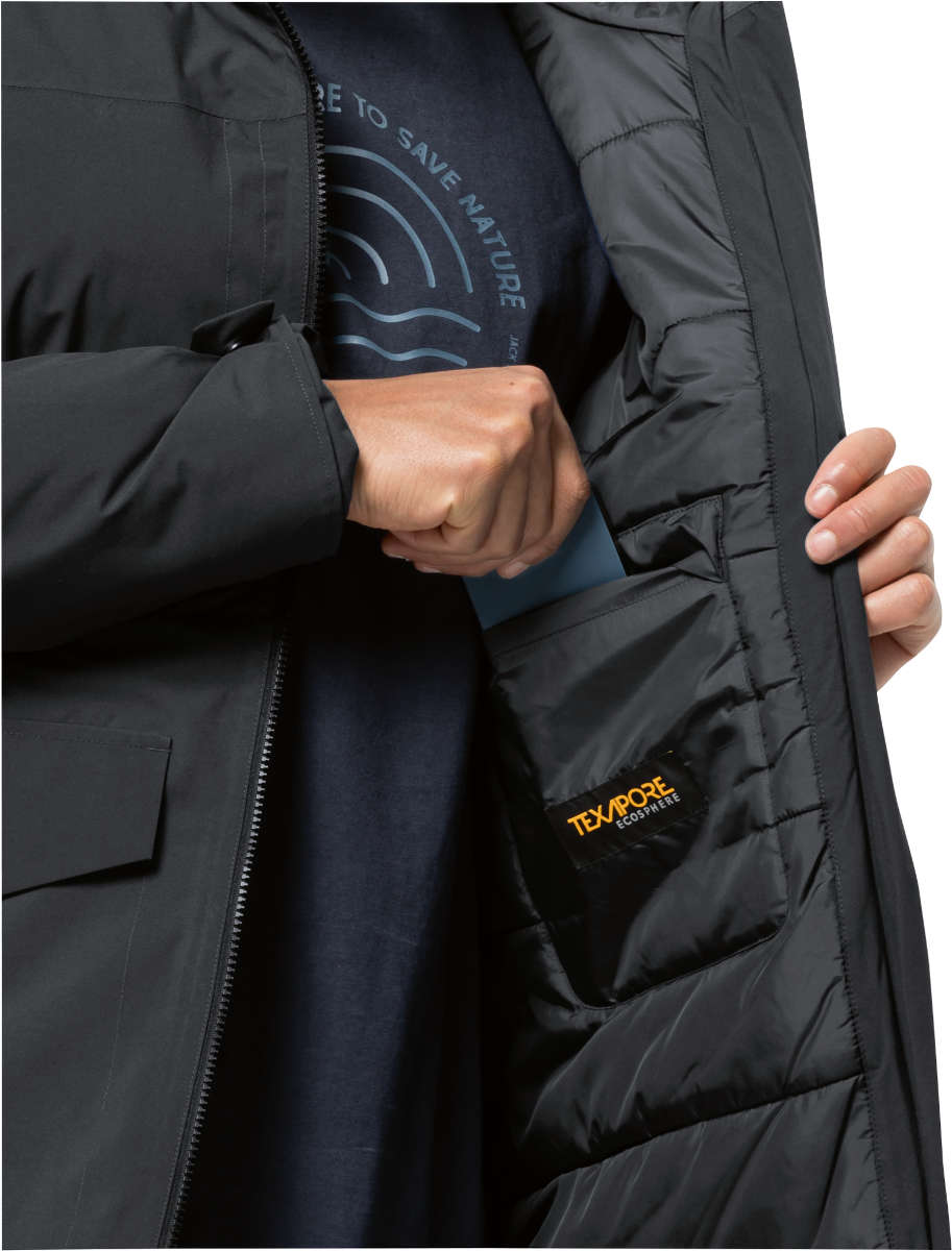 No matter where you're heading, the waterproof and windproof KOENIGSBAU PARKA is a must-take item. A lightweight and water resistant PRIMALOFT insulation ensures optimal heat retention. The sustainable and breathable TEXAPORE ECOSPHERE shell fabric protects you from rain and snow. The parka is equipped with multiple pockets, including a zipped sleeve pocket, so there's plenty of room for all your essentials. The main fabrics are all sustainably made from recycled materials.