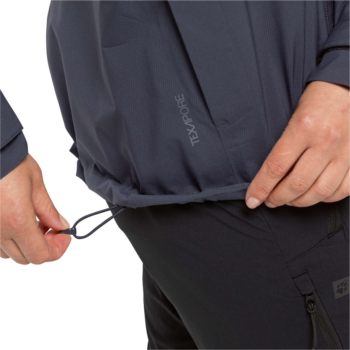 The 2.5-layer TEXAPORE ECOSPHERE PRO makes the jacket windproof and waterproof. All of the zips on the jacket are water resistant. The fabric is very breathable and additional ventilation is provides by the pit zips.
