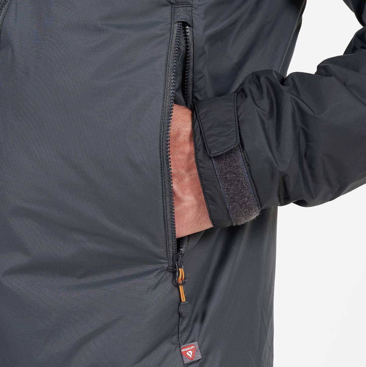 - Extra layer of 60g PrimaLoft® SILVER ECO in front of hand pockets