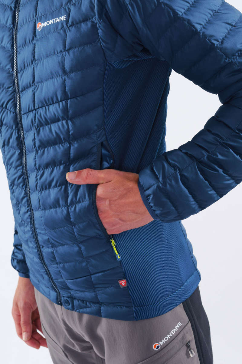 Warm PrimaLoft® ThermoPlume insulation in the core body and overarms is combined with STRIA Lite stretch fleece in the side body and under the arms for enhanced movement and comfort whilst moving fast when climbing or trekking. A jacket with versatility as a mid layer or outer layer.