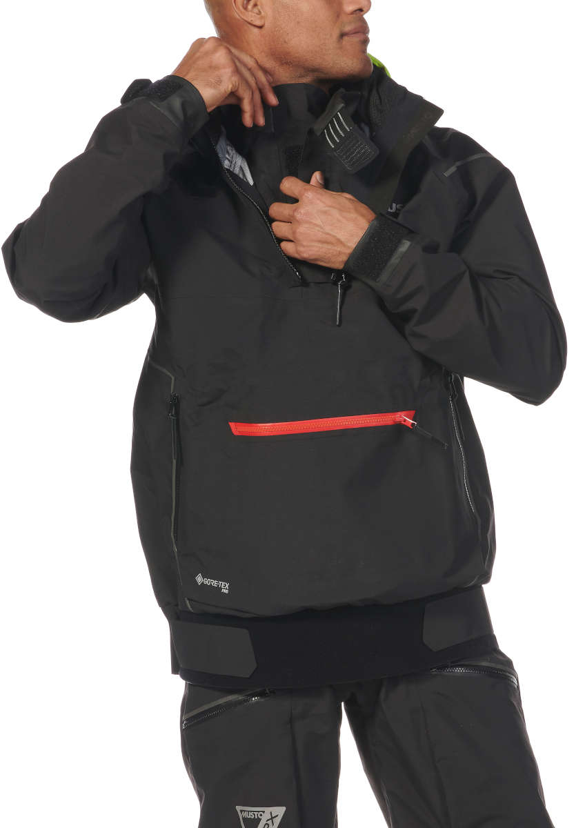 A dynamic and innovative smock for racing day and night all year round. Ergonomic and comfortable with the guaranteed protection of 3-layer GORE-TEX Pro fabric and a new mid-height collar that can be worn down for maximum racing awareness or zipped up for warmth and additional water protection.