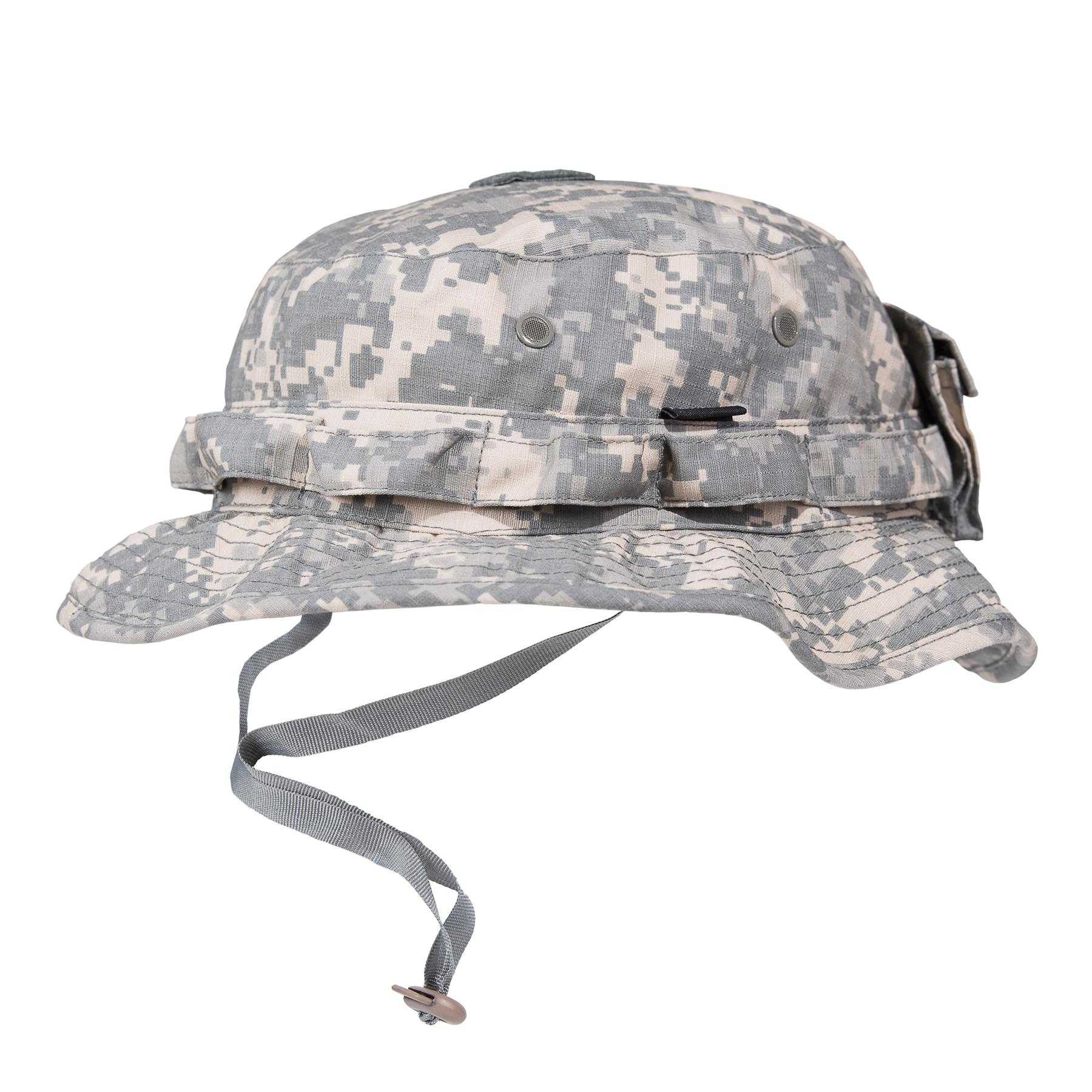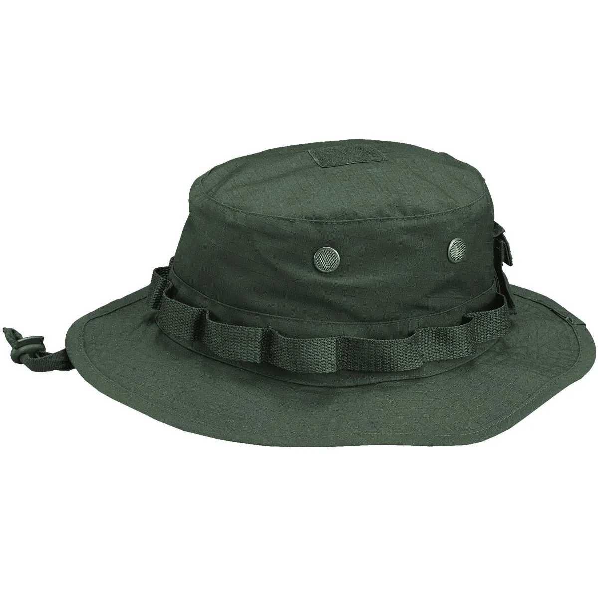 JUNGLE HAT also Known as the Boonie hat just gotten even better, with the Classical branch holding Loops around the crown of the hat, O-rings for ventilation with insect repellent gauge, a Velcro Patch on the top for your IR Patches and a Removable back pocket for small utilities.