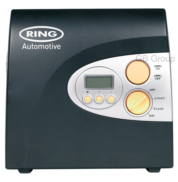 The Ring Automotive RAC600 12-Volt Automatic Digital Air Compressor has a self-select pressure mode with automatic switch off.