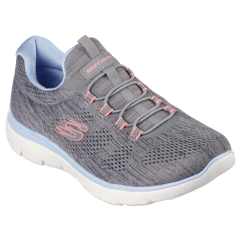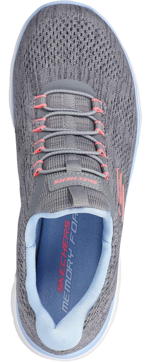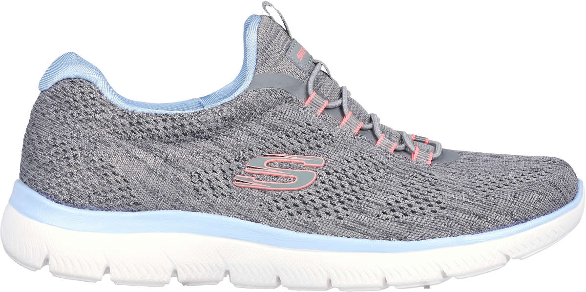 Athletic style and flexible comfort combine in Skechers Summits - Fun Flair. Featuring a heathered engineered mesh upper with stretch laces and a cushioned Skechers Memory Foam™ comfort insole.