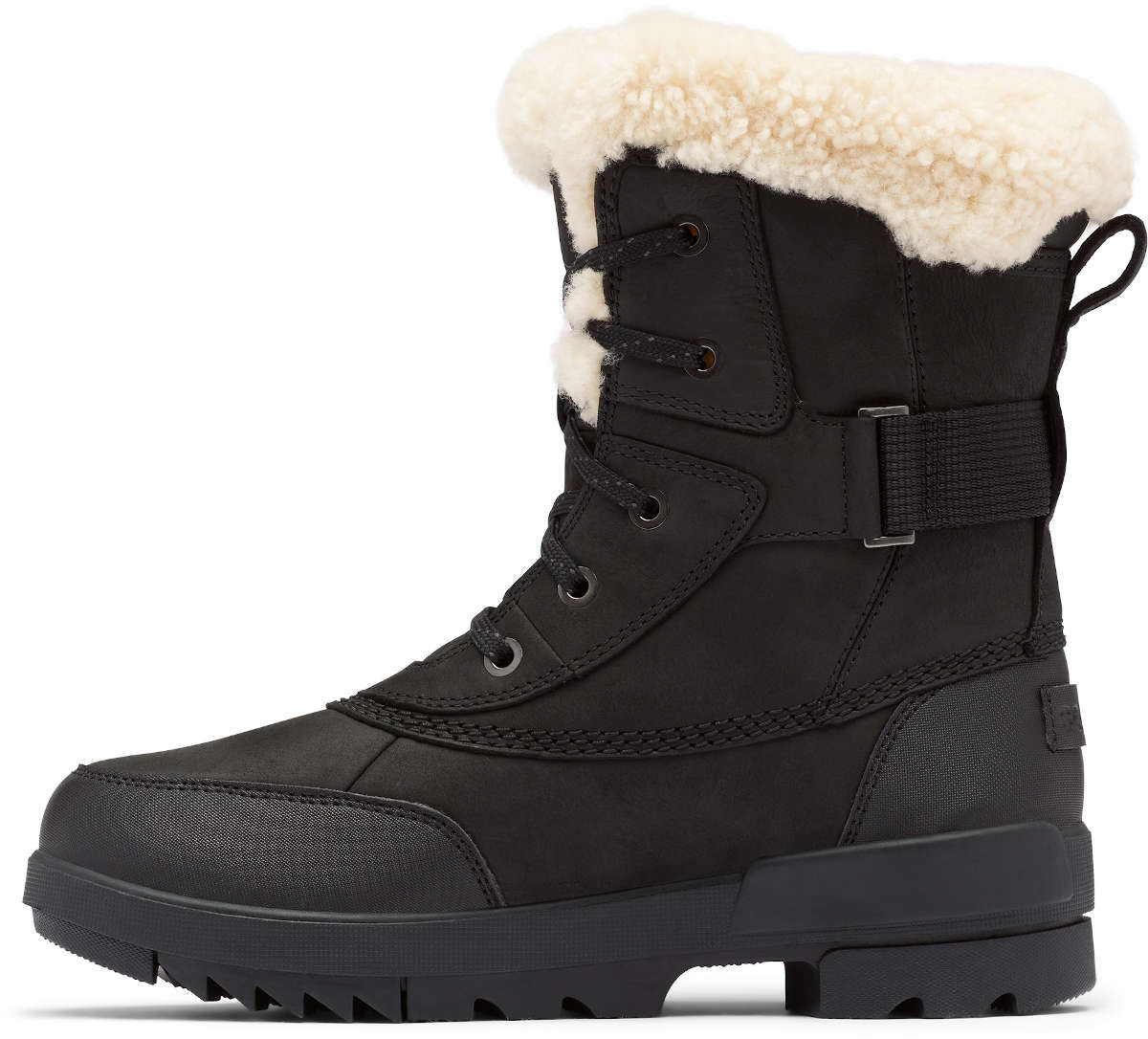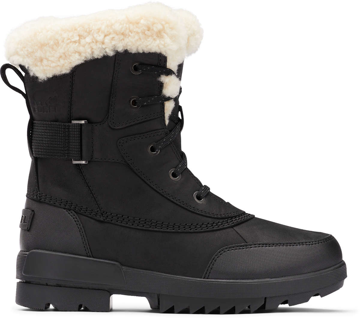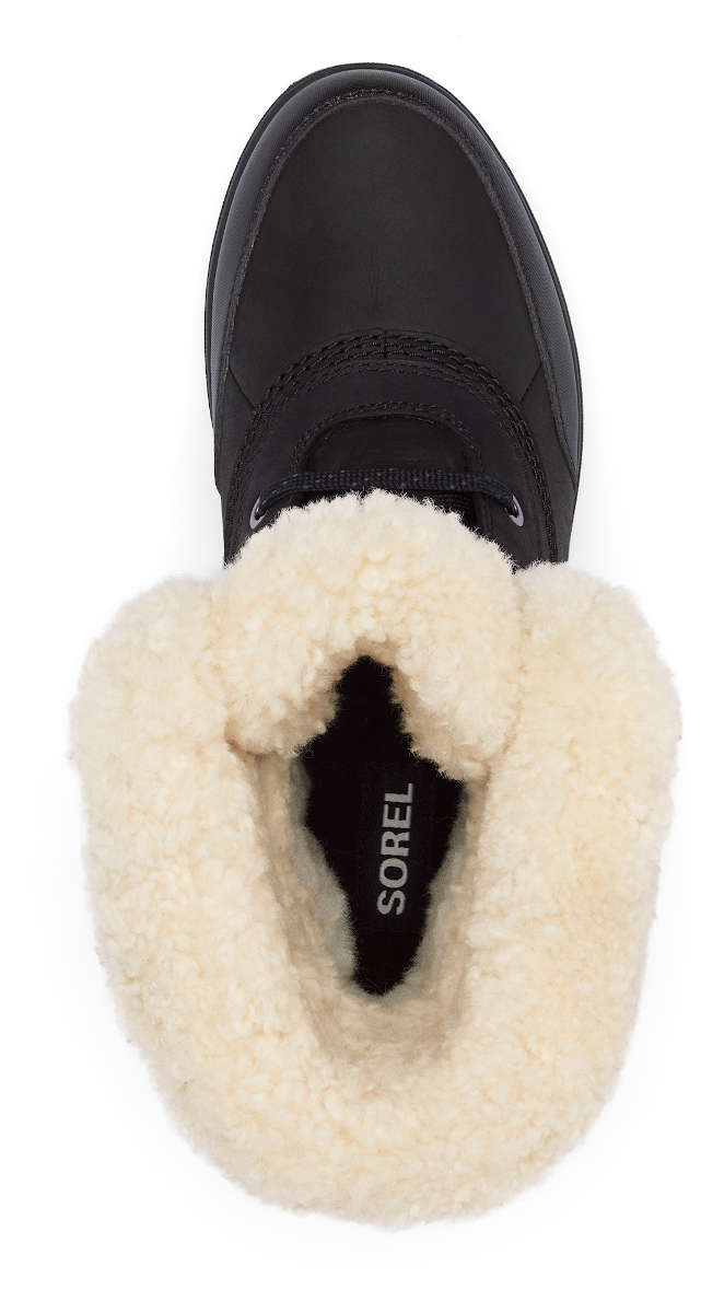 - UPPER: Waterproof full grain leather upper with shearling collar and synthetic overlays. Genuine wool lining. Waterproof seam-sealed construction. Laces are not waterproof