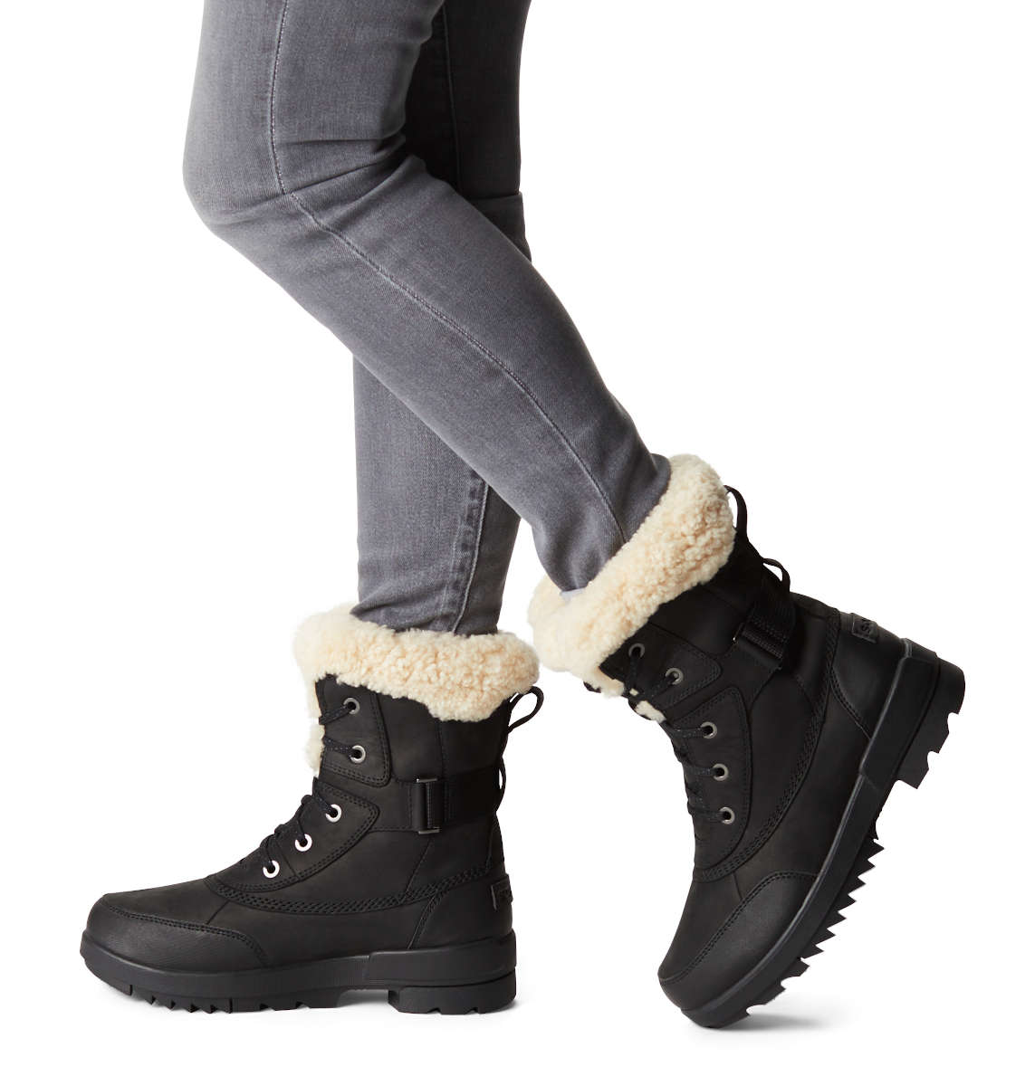 Rugged laces meet genuine shearling in this one-of-a-kind bootie. Featuring show stopping waterproof leather, a genuine shearling collar with wool lining, an EVA footbed, and molded rubber sole for traction during rainy days.