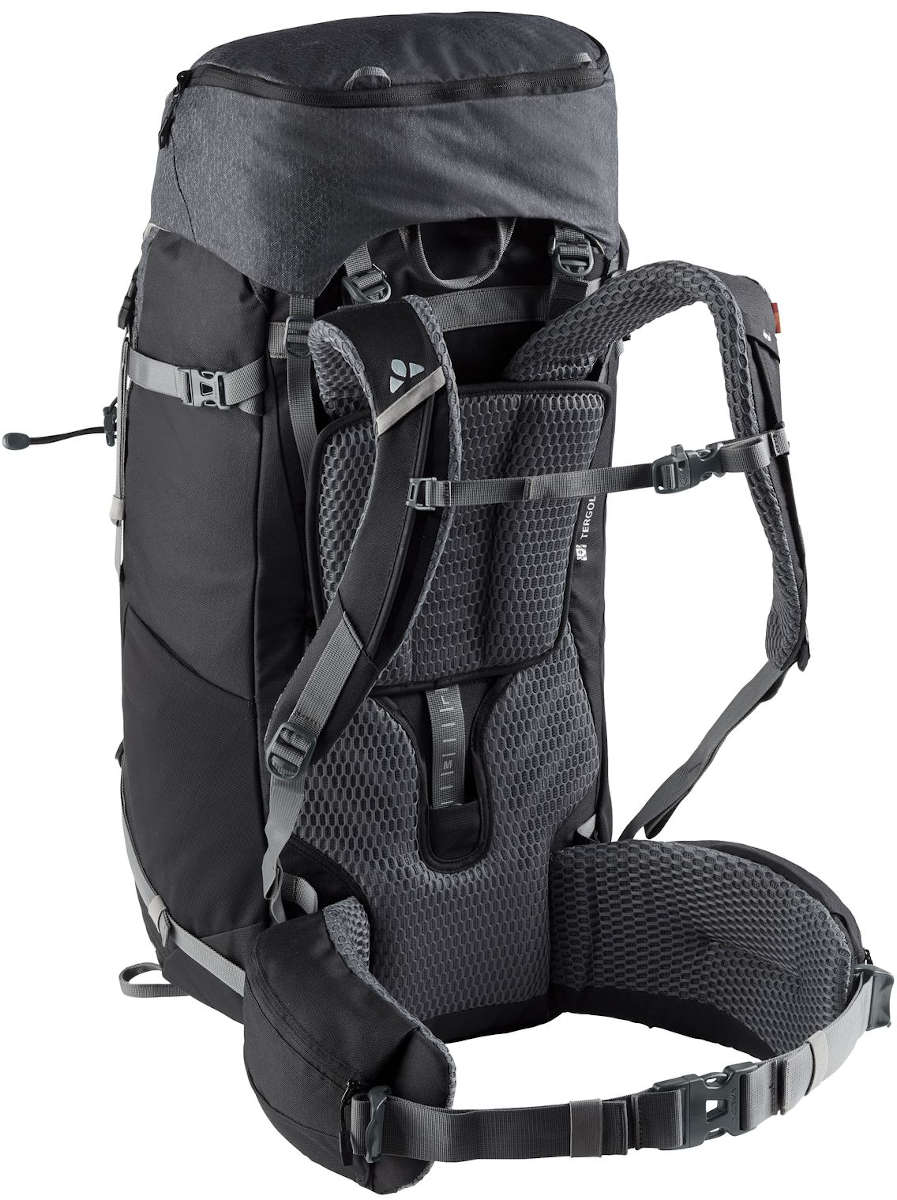The Asymmetric 52+8 will accompany you from hut to hut! This spacious touring backpack is a perfect choice for multi-day alpine hikes, pilgrimages and backpacking. The body contact back provides a stable, comfortable fit. The Tergolight suspension system has an integrated frame and in combination with the Ergoshape shoulder straps ensures to an excellent load transfer and reliable stability. The suspension system, load positioning and the comfortable shoulder straps are easily and fully adjustable so that a wide range of back lengths can be achieved for a precision fit. The stable hip belt ensures stability and good load transfer. In addition to the spacious main compartment, which is also accessible from the front, the Asymmetric 52+8 also has an patch pocket for a map, rain jacket and other things that need to be quickly at hand. The adjustable and removable lid is outfitted with an easily accessible outer compartment and an internal valuables compartment. The integrated bottom compartment is ideal for transporting dirty laundry or a sleeping bag. Compressions straps on the side and under the lid allow you to secure everything tightly. Gear loops accommodate both an ice pick and your trekking poles. Additional gear can be attached to additional attachment loops. To protect the planet, the textile primary materials were manufactured with eco-friendly, resource-conserving methods and certified in accordance with the strict bluesign® system. The VAUDE Green Shape label stands for environmentally-friendly, functional products made from sustainable materials.